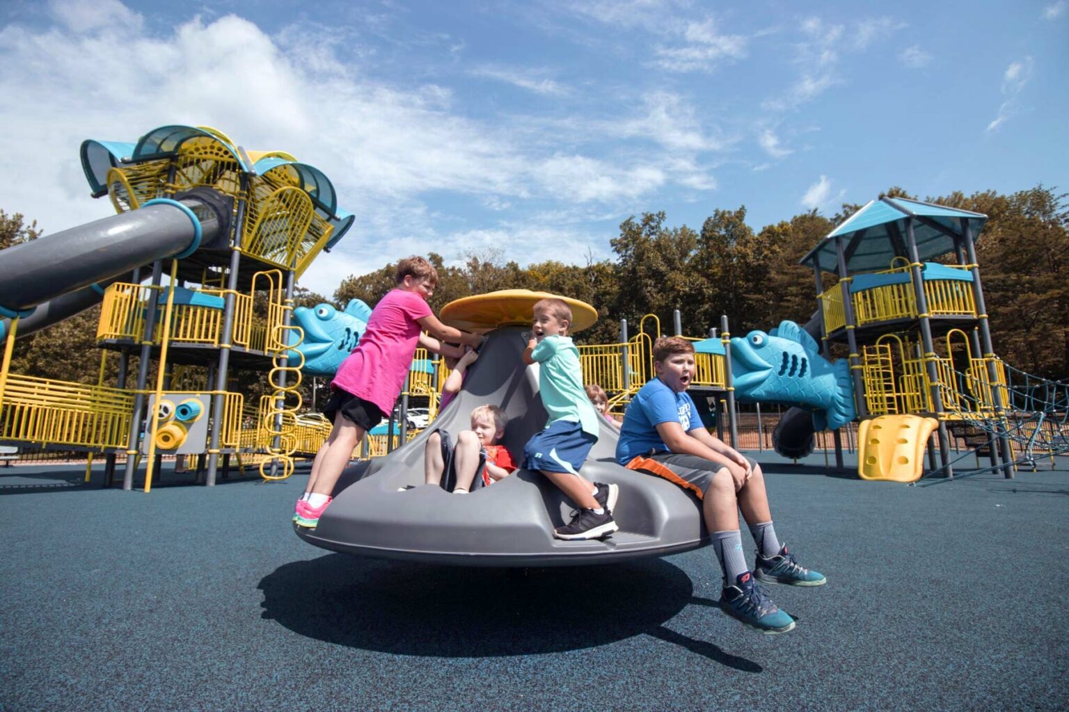 Fischer Fun Park 2 is a colorful climbing and sliding playground. It’s an all-inclusive activity playground for families with a sand volleyball court, a splash pad and it features play […]