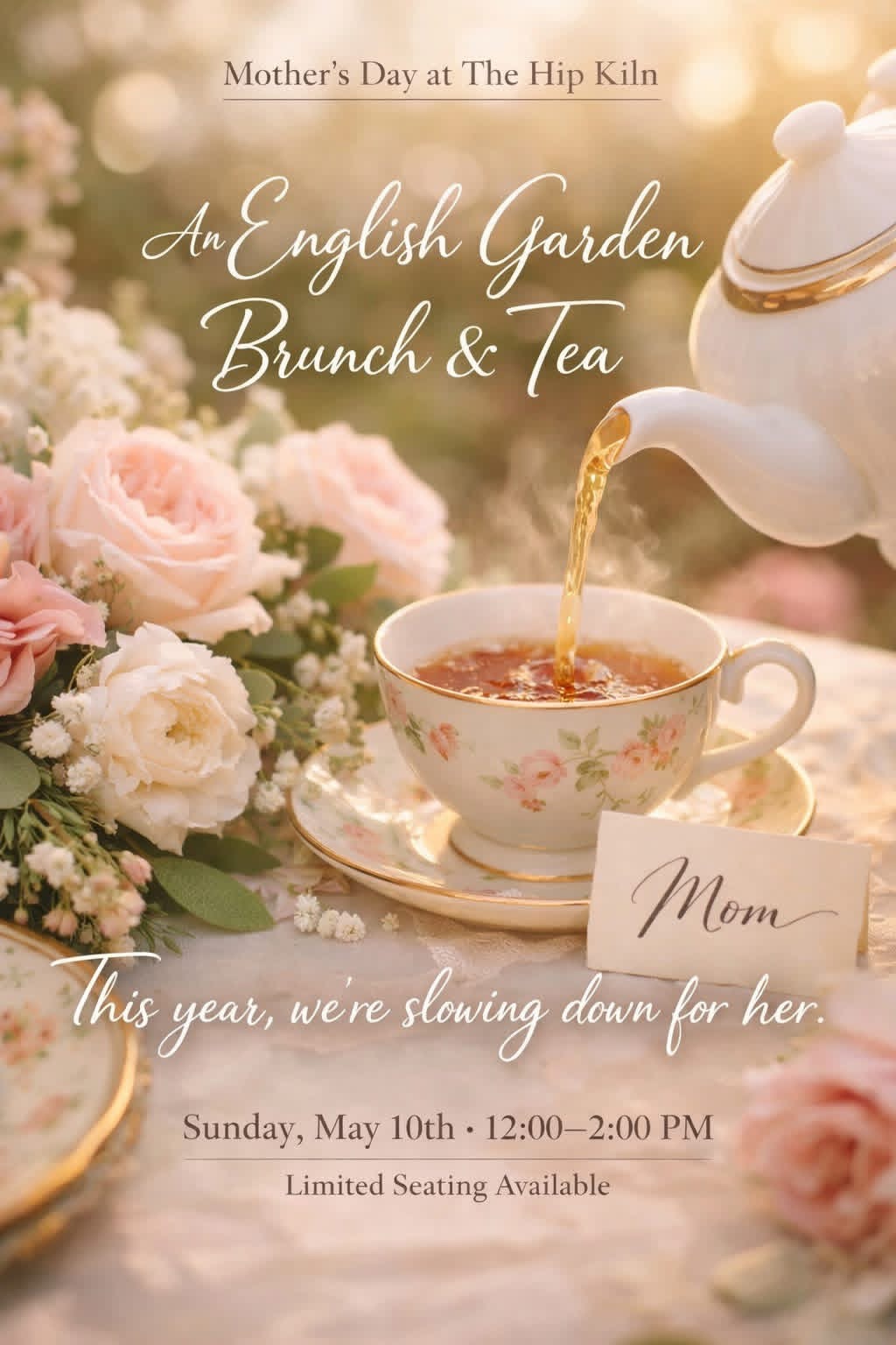 Cel­e­brate Moth­er’s Day with a thought­ful and beau­ti­ful­ly curat­ed expe­ri­ence at The Hip Kiln. Whether you’re hon­or­ing your mom, being cel­e­brat­ed, or sim­ply tak­ing a qui­et moment for your­self, this inti­mate gath­er­ing offers a wel­com­ing space for reflec­tion, con­nec­tion, and cel­e­bra­tion in all its forms, with lim­it­ed seat­ing avail­able.
