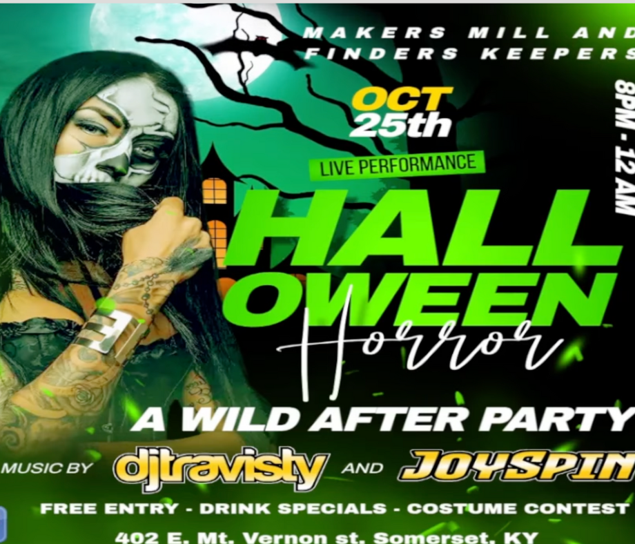 Finders Keepers 402 E Mount Vernon St, Somerset, KY, United StatesHalloween Horror Party on Saturday, October 25 at 8:00 p.m. at the Finders Keepers in Downtown Somerset.
