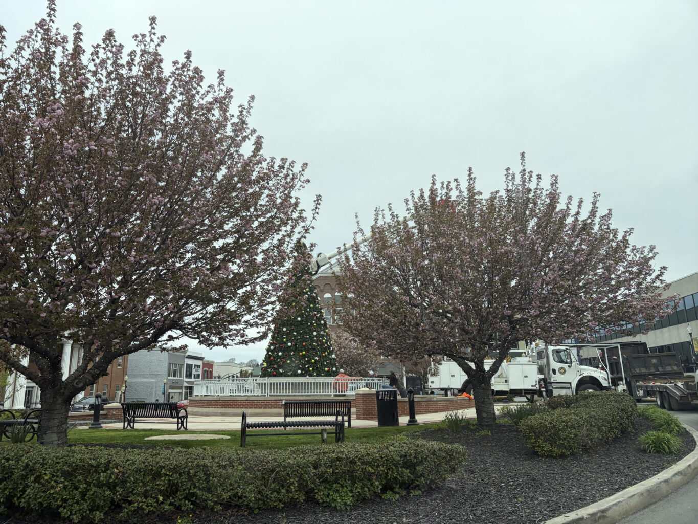 During the last week, hometown film scout and location manager Charlie Louthen and his team from Lex Studios have set up shop in Somerset-Pulaski County to shoot a new feature film, Christmas at Moose Lake, bringing the holiday season back to life in the middle of spring. Not only have residents and visitors been delighted by the community Christmas tree back on display at Fountain Square, but visitors to Pulaski County Park have also been treated to a backdrop of Christmas trees and snow.